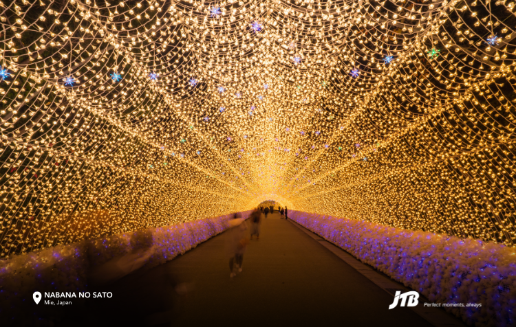 Experience the enchanting winter in Nagoya with a visit to Nabana-no-Sato's dazzling light displays and the serene, sacred beauty of Ise Jingu Shrine.
